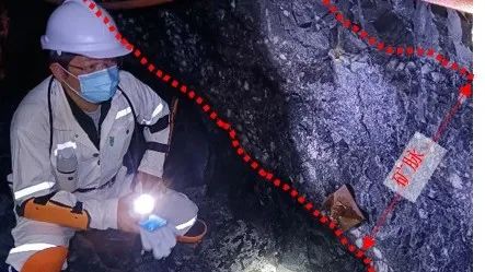 1050中段17線控制的VCR礦體 1050中段17線探獲礦體的代表性礦石